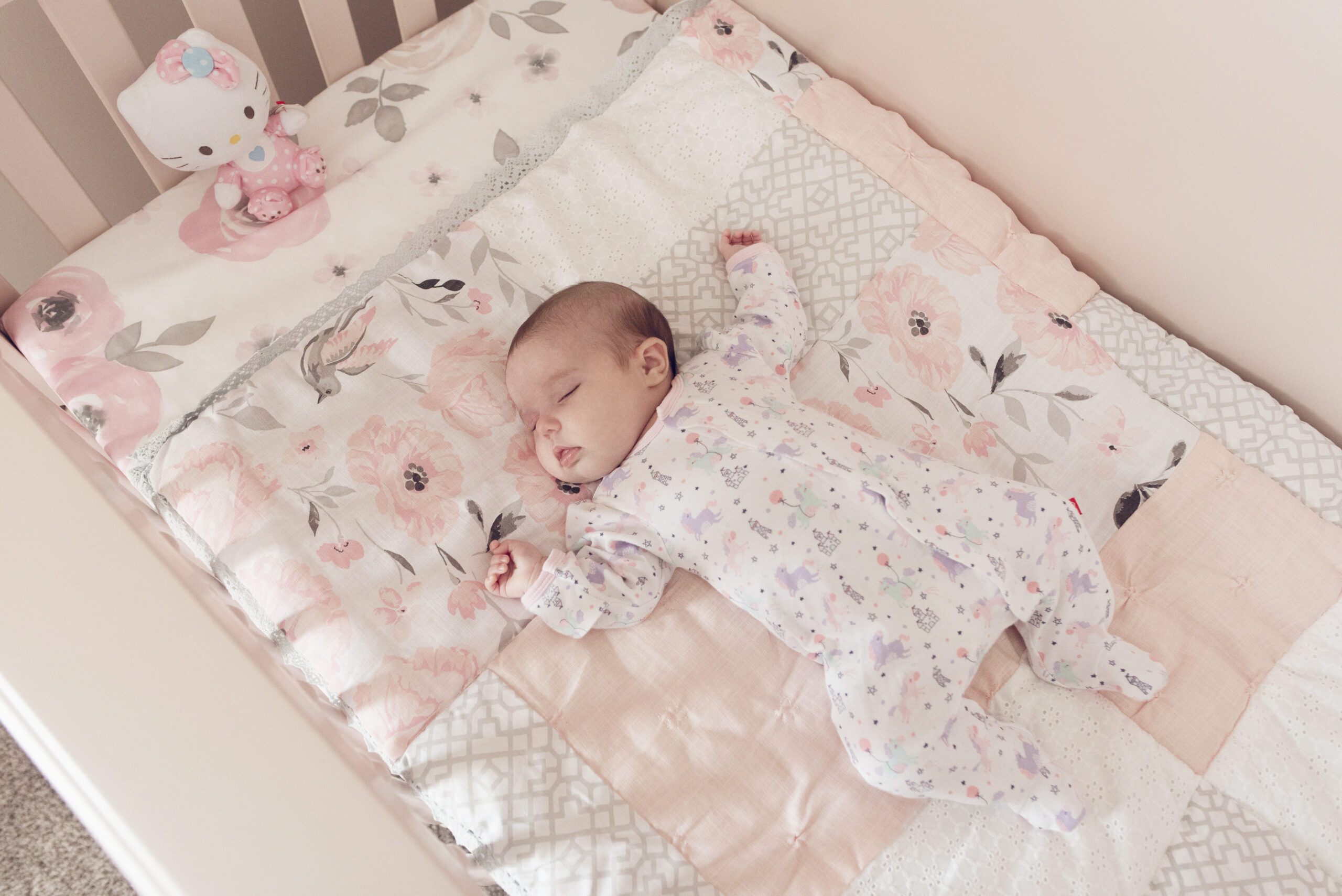 And of course, our much awaited, beautiful baby girl in her crib for the first time, followed by her in it at 8 months old and again on her 1st birthday.